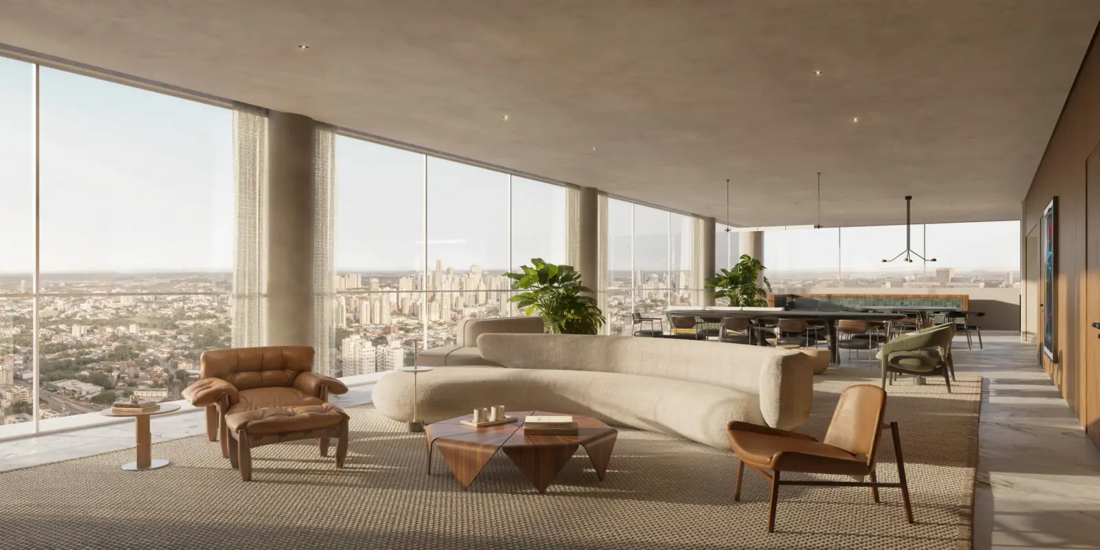 Localizado na Ricardo Paranhos, o projeto redefine o padrão de morar em Goiânia com residências de 251m² a 305m², todas com 4 suítes, além de penthouses que ultrapassam os 470m². Aqui, não é sobre espaço. É sobre escala, presença e permanência.