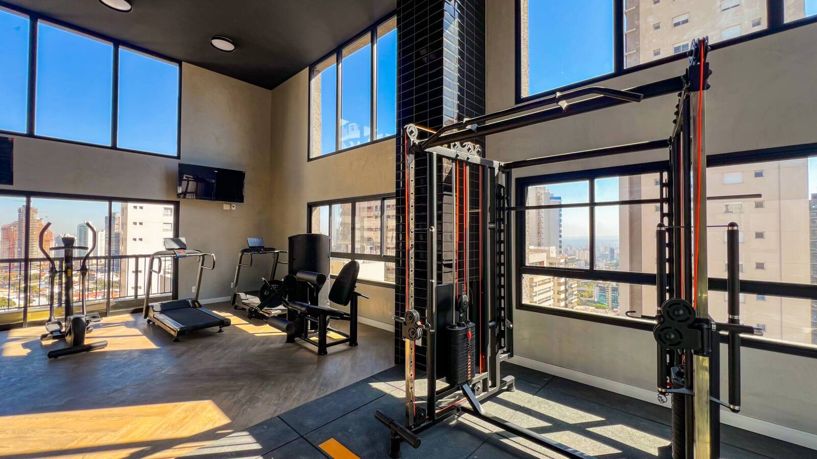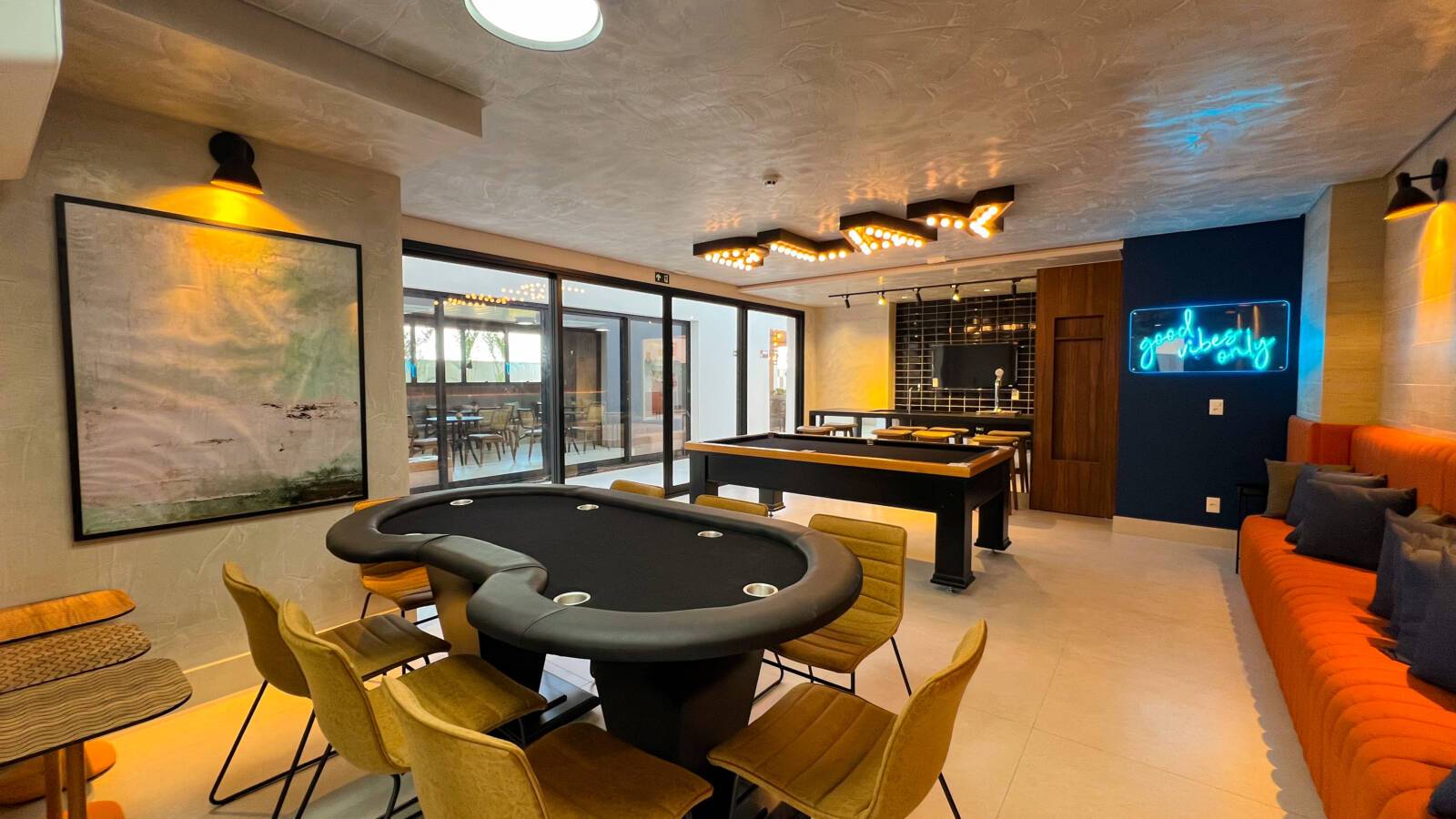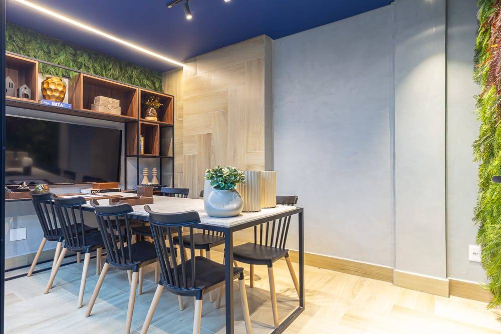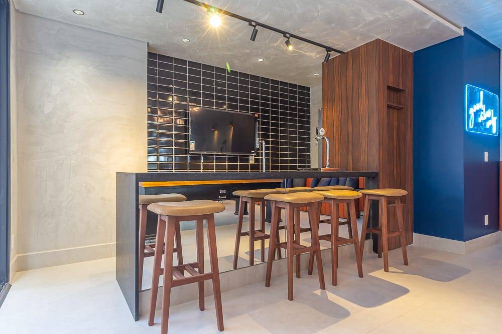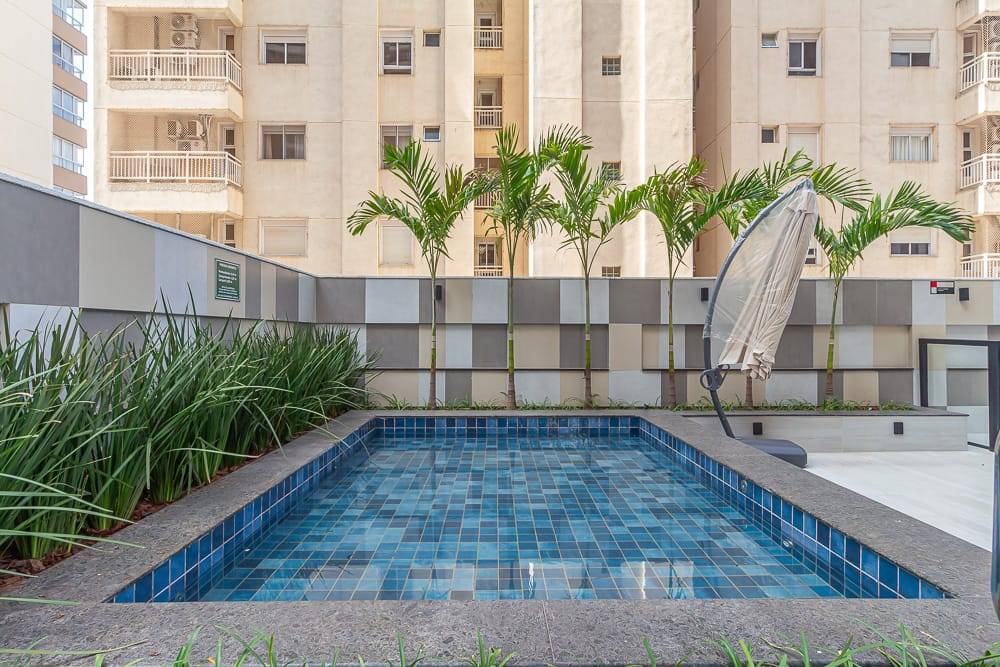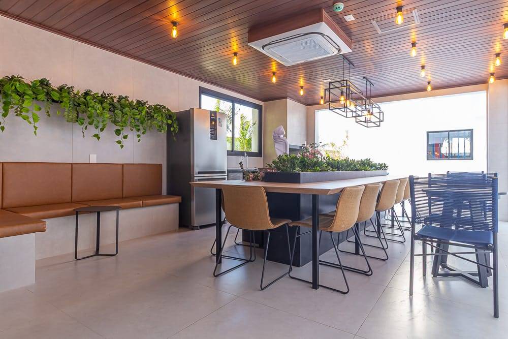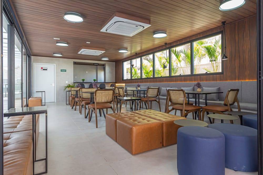 As áreas comuns incluem piscina climatizada com borda infinita, spa, sauna, academia, brinquedoteca, playground, salão de festas, espaço gourmet, coworking com salas de reunião e cabines individuais, lavanderia coletiva com lounge e Wi-Fi, espaço delivery refrigerado e box delivery com controle via aplicativo. O empreendimento também conta com placas fotovoltaicas para geração de energia sustentável e acesso por QR Code, pin pad ou reconhecimento facial.