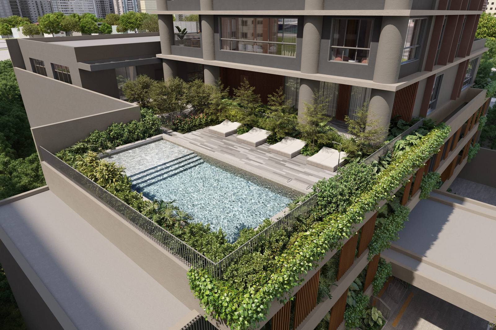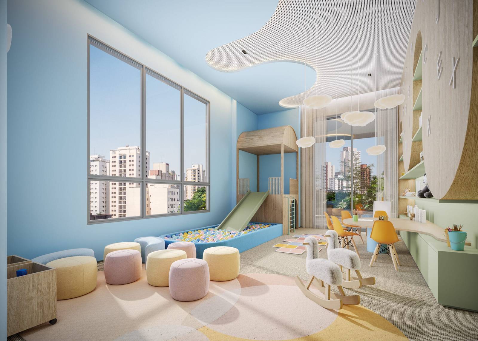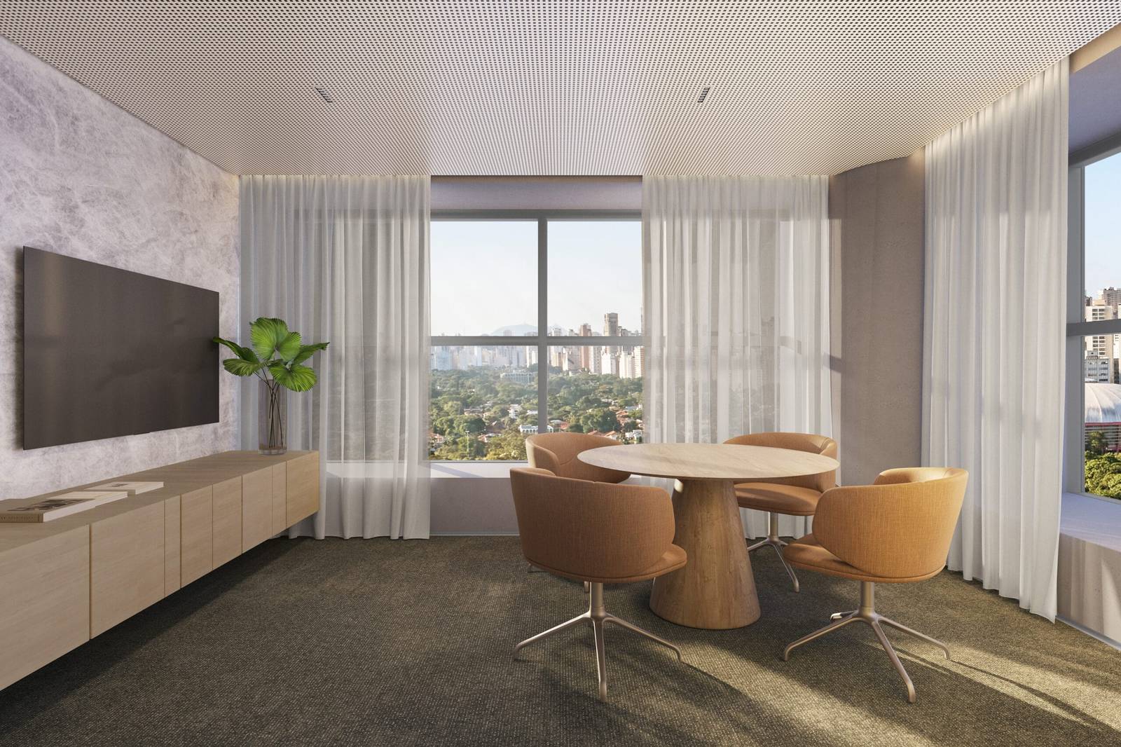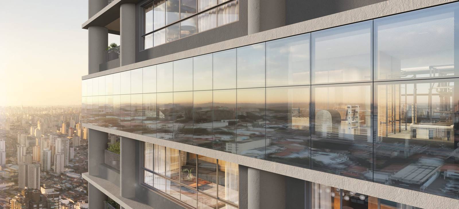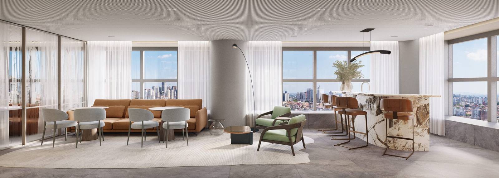 A infraestrutura reforça o padrão do empreendimento: gerador atendendo 100% do edifício, elevadores de alta velocidade, reconhecimento facial nos acessos e vagas com previsão para carregamento de carro elétrico.