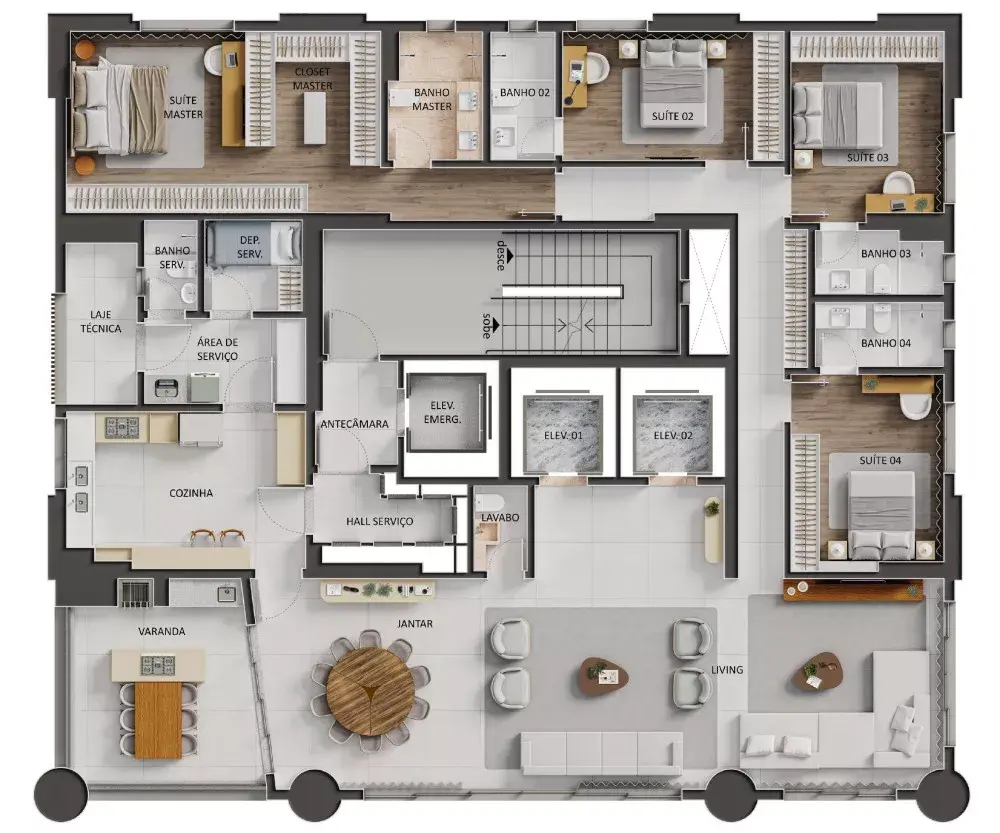 Você procura um apartamento 4 suítes realmente à altura do Parque Vaca Brava?