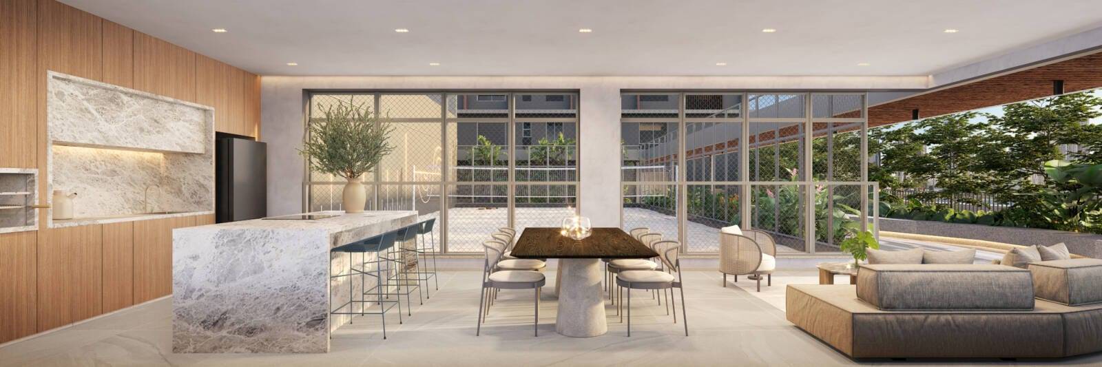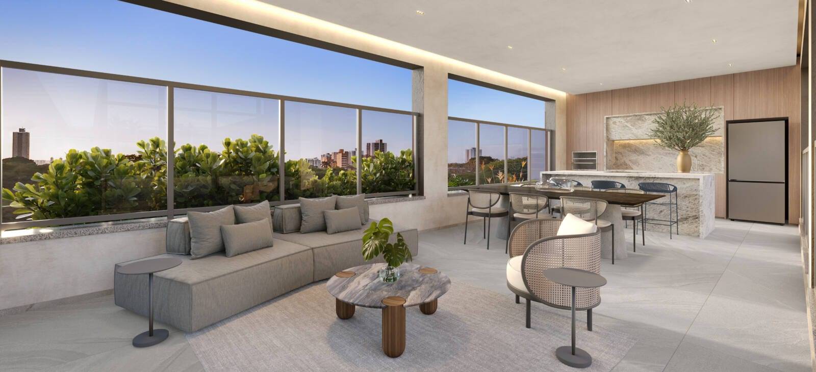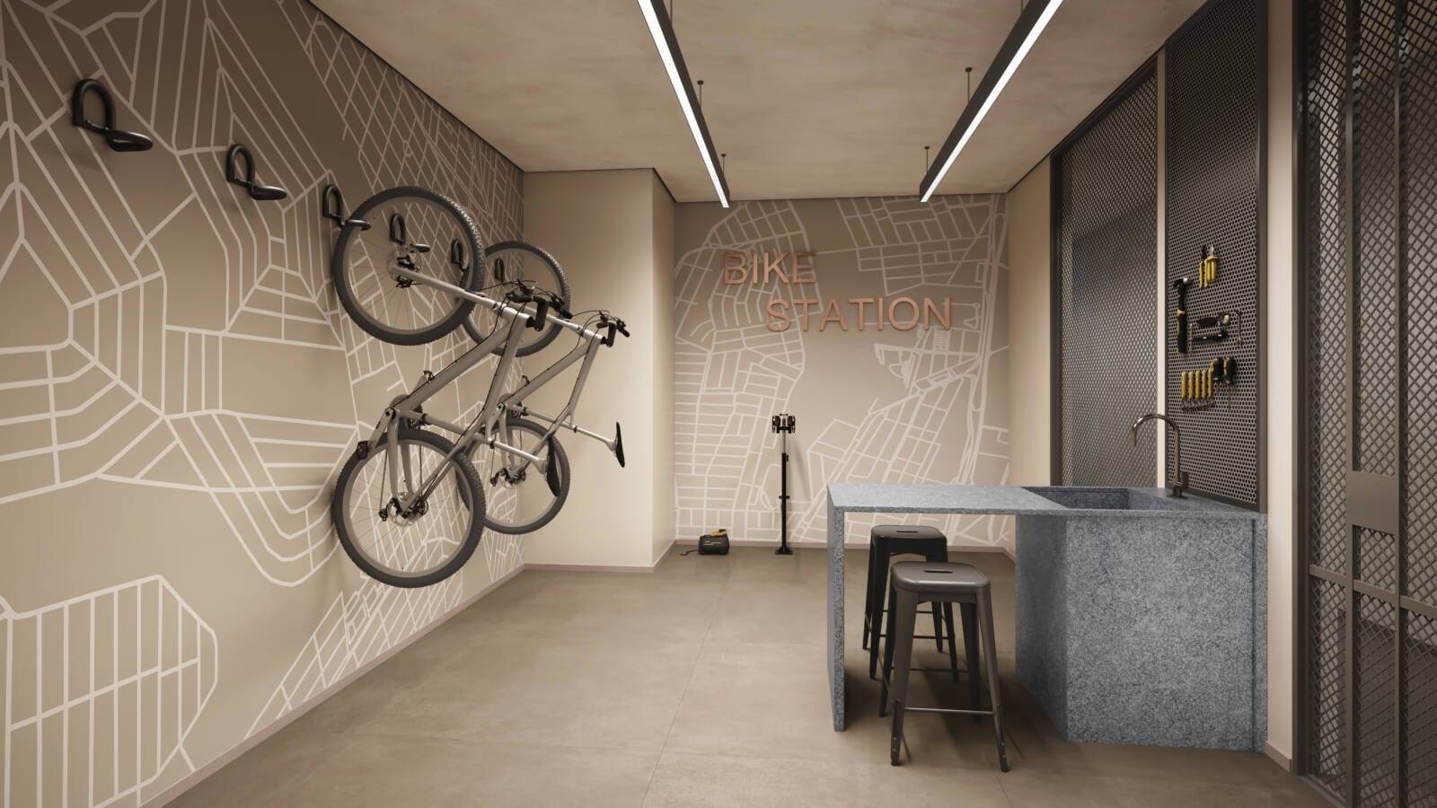 A infraestrutura completa inclui gerador atendendo 100% do empreendimento — inclusive as unidades — duas entradas com porte-cochère, segurança reforçada com vidro blindado, reconhecimento facial, previsão de automação, irrigação automatizada, City Market, Delivery Room, Pet Care, Bike Station e estacionamento com piso epóxi.