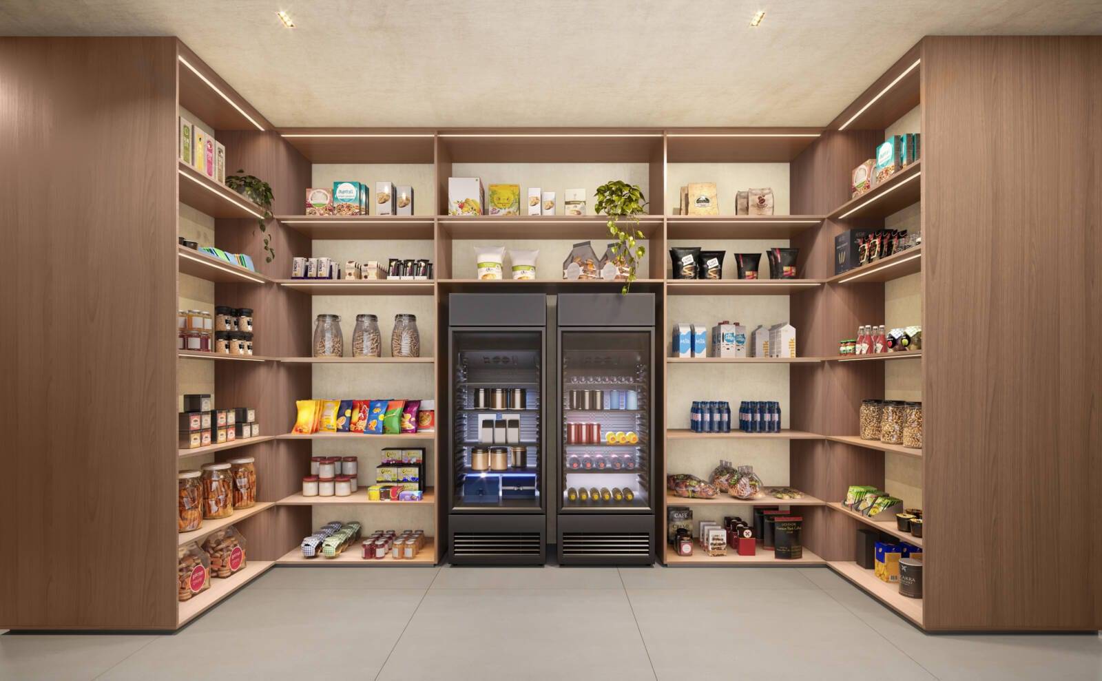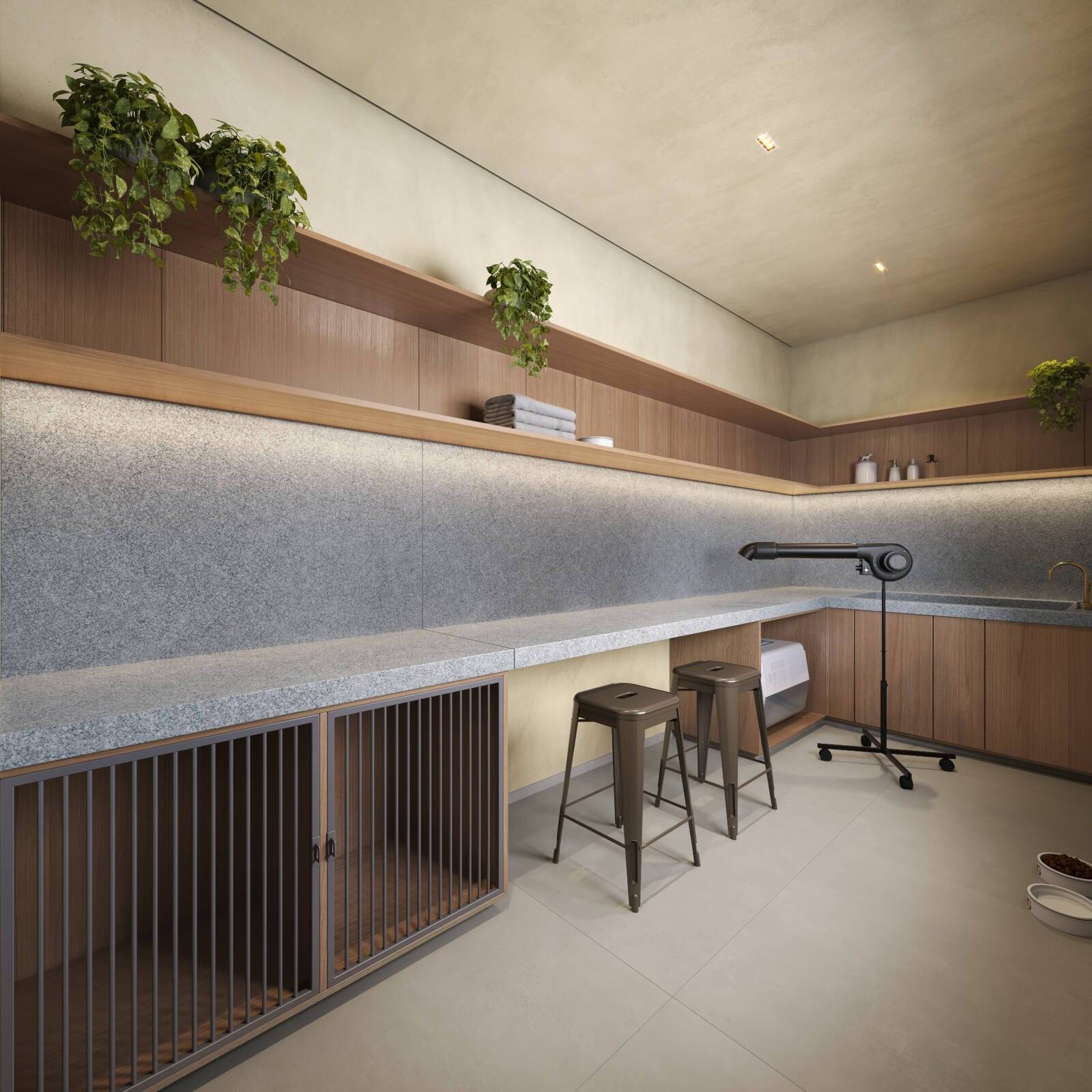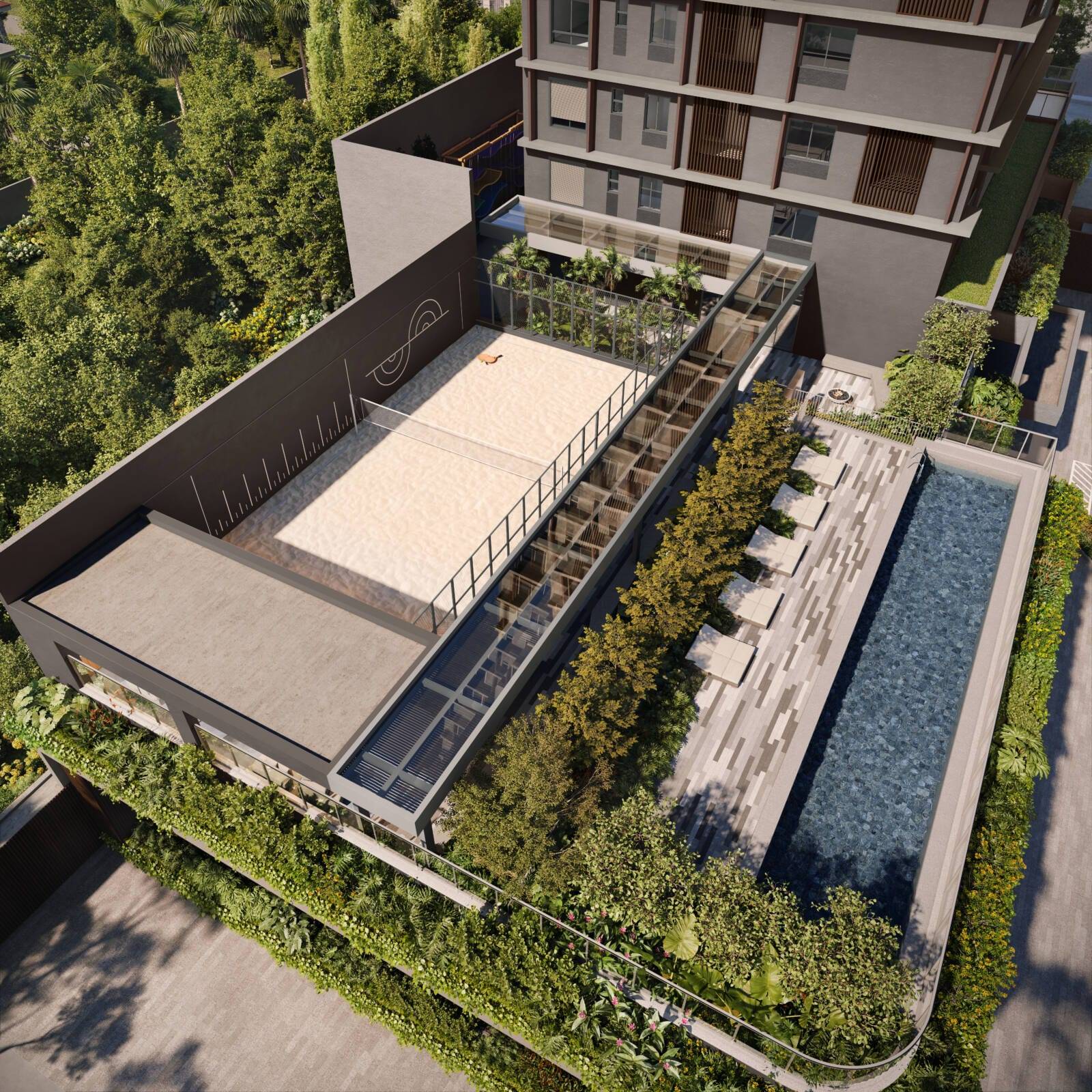 A infraestrutura completa inclui gerador atendendo 100% do empreendimento — inclusive as unidades — duas entradas com porte-cochère, segurança reforçada com vidro blindado, reconhecimento facial, previsão de automação, irrigação automatizada, City Market, Delivery Room, Pet Care, Bike Station e estacionamento com piso epóxi.