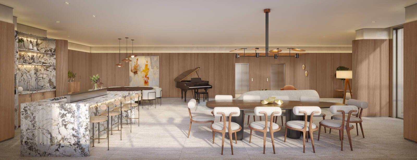 Com 1 apartamento por andar, o Royal apresenta residências de 435 m² com 4 suítes, hall privativo com dois elevadores, laje maciça para conforto acústico e um gourmet com churrasqueira a carvão. As unidades contam com janelas com persianas integradas, pé-direito de até 2,80 m nos ambientes sociais, VRF, ventilação natural nos banhos e piscina privativa com pé-direito duplo.